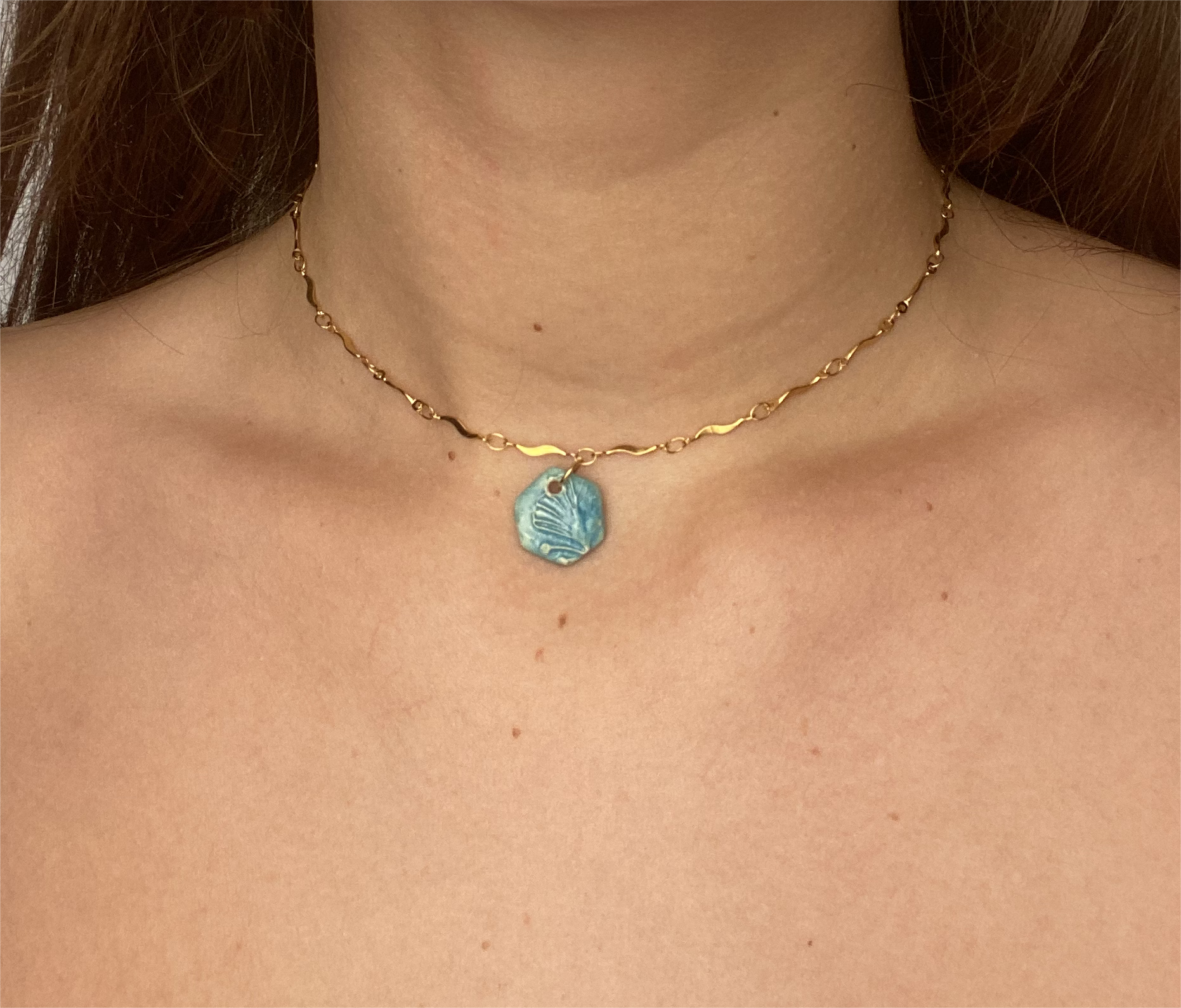 Ciondolo in ceramica smaltato di azzurro